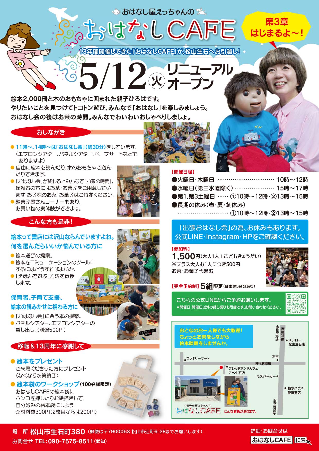 おはなしCAFE5月12日㈫リニューアルオープンします!